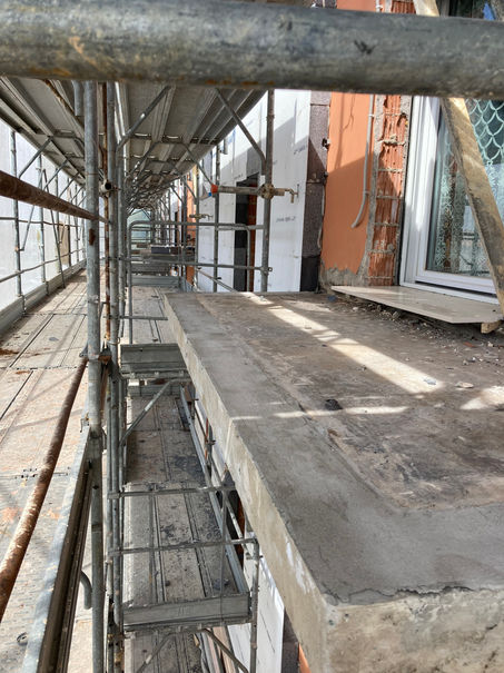 - Manutenzione dei balconi con impermeabilizzazione, nuova pavimentazione, sostituzione delle ringhiere, rasatura armata e tinteggiatura dei bordi e coibentazione dell'intradosso (sotto delle terrazze);